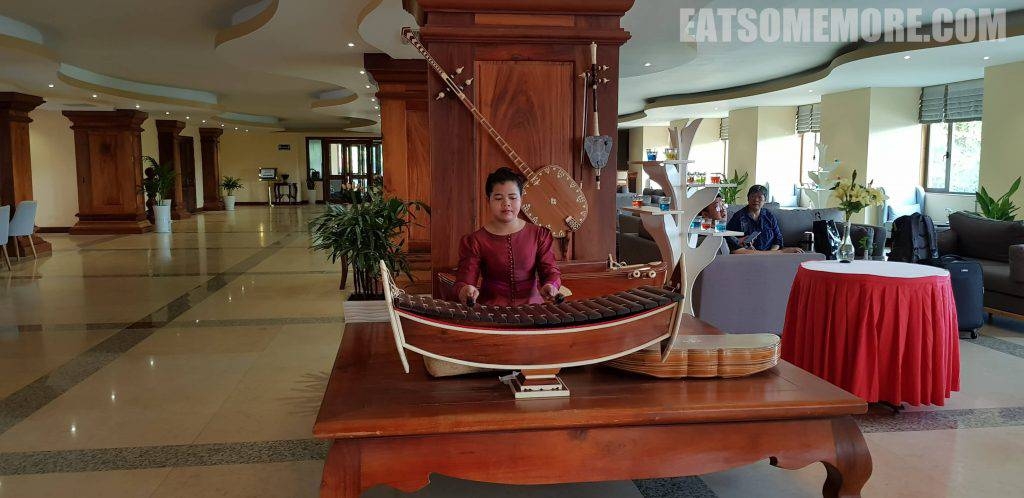 酒店大堂有柬埔寨传统乐器的现场表演。