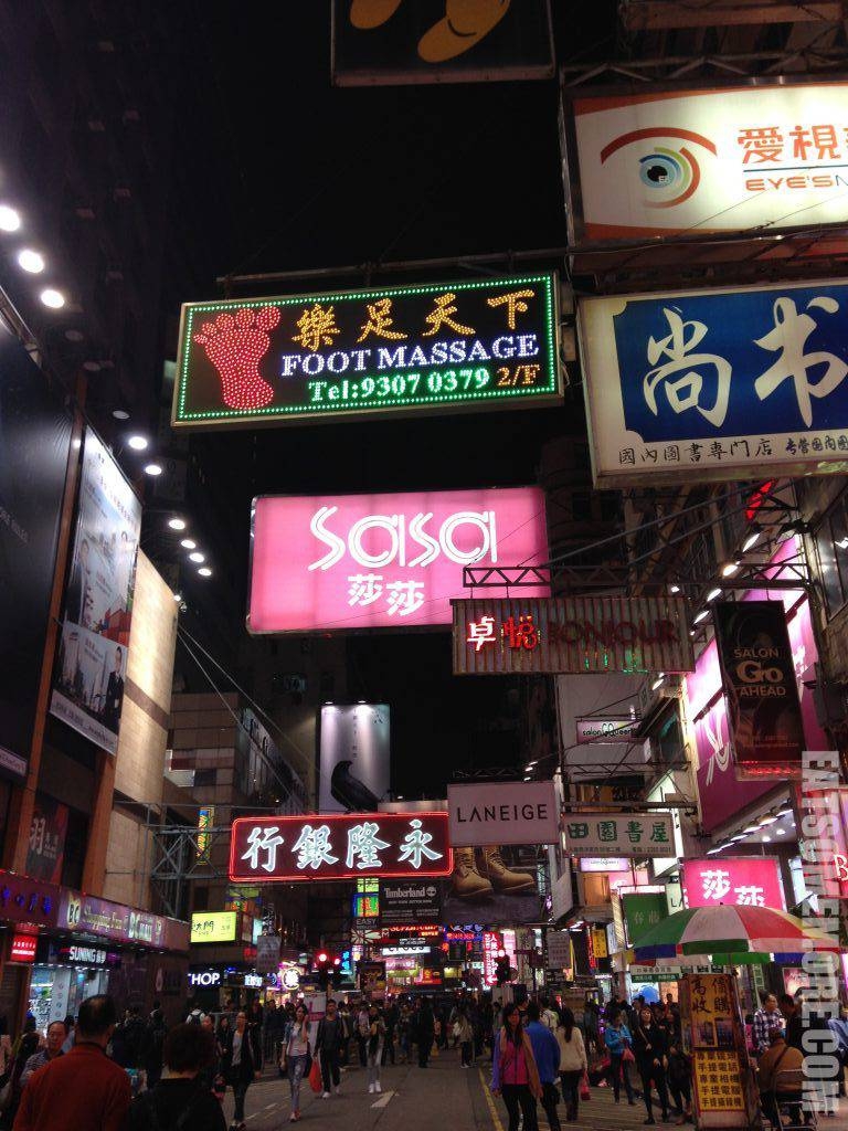 香港的街招铺天盖地,在夜里也是极其灿烂的。