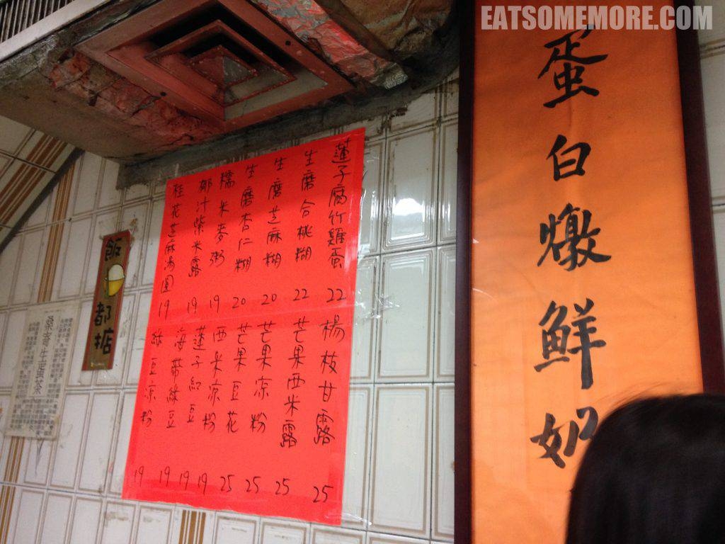 作为久居英国大农村的群众,一到旺角顿感凌乱——通街的大商场、水果店、服装店、金鱼铺、小吃店,应有尽有。七拐拐八弯弯地来到这一家不起眼也没有招牌的甜品店。店里的陈设极尽古典,桌椅、挂历、电风扇和墙上挂着的手写餐单,无不争相体现着浓郁的香港味。