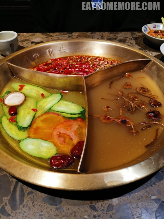 锅底有三种,红油锅底又香又麻,番茄锅底搭配红枣枸杞黄瓜,菌菇锅底里的茶树菇香味浓郁。