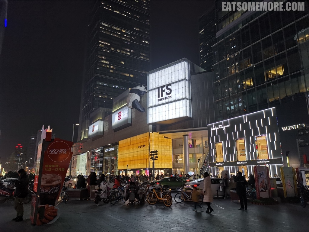 春熙路步行街好像上海的南京东路。然而非常具有地域特色的是这里的IFS招牌边上有一只正在爬墙的熊猫。