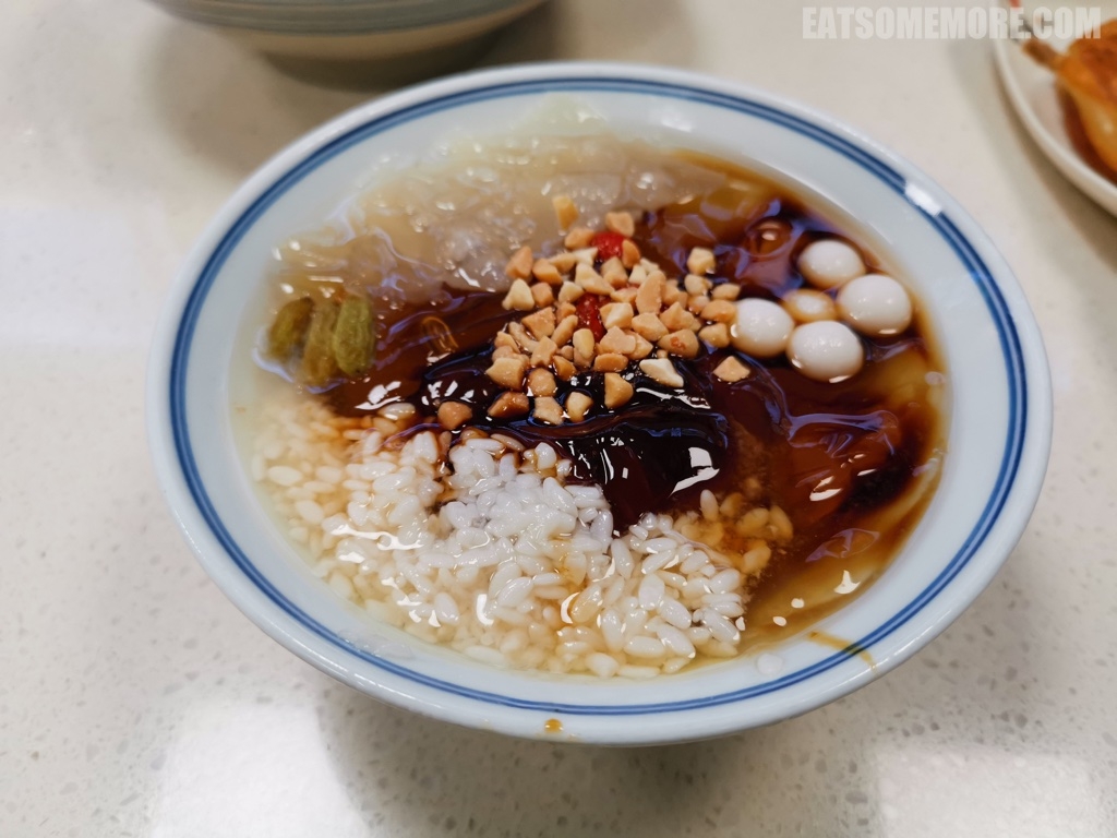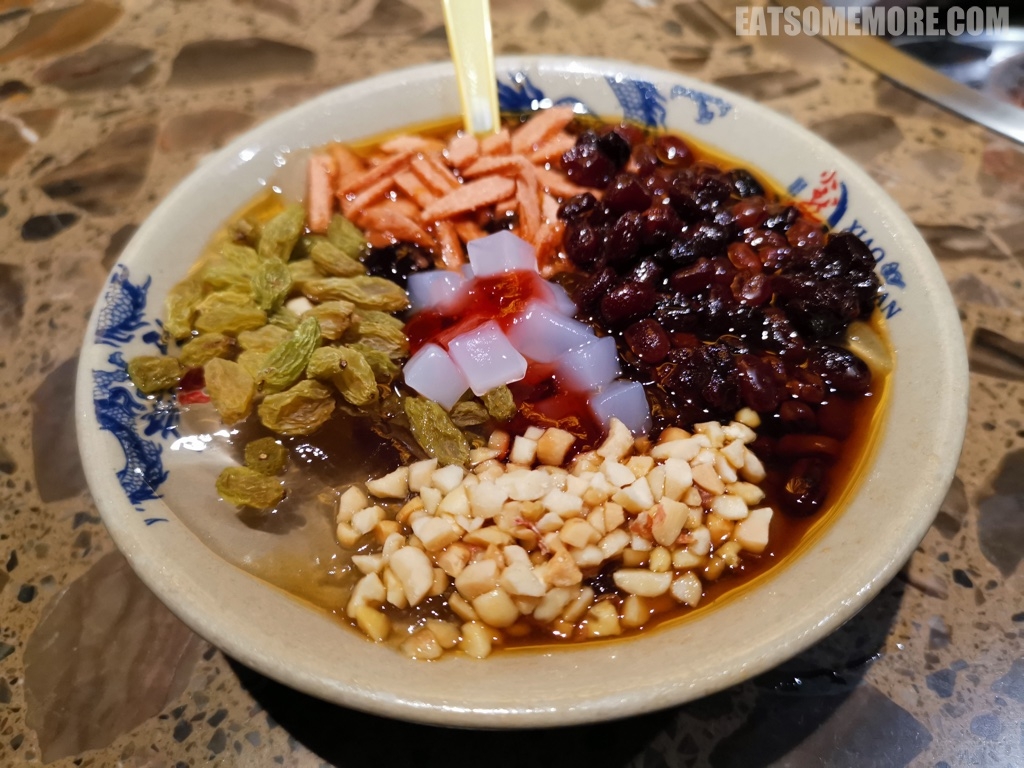 这一家的冰粉更加冰爽柔滑,配料则有花生碎、葡萄干、糯米丸子、酒酿和银耳。果然是百年老店,是午夜梦回都会常常想起的美味啊!