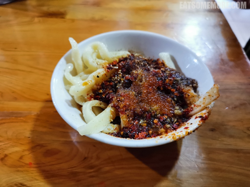 参拜文殊院后,我们来到有百年历史的甘食记。招牌美食肥肠粉,据说美味祛湿。一走进店里就见到一位师傅正在徒手打红薯粉。吸溜到第一口粉的时候,我就感叹新鲜薯粉怎么能这么好吃,这么爽滑,这么有嚼劲!第一次觉得食物的现场制作完全不是噱头,现打鲜粉也太有必要了吧!就算是毫无腥味的脆嫩肥肠和鲜香麻辣的秘制川味佐料,也无法喧宾夺主。