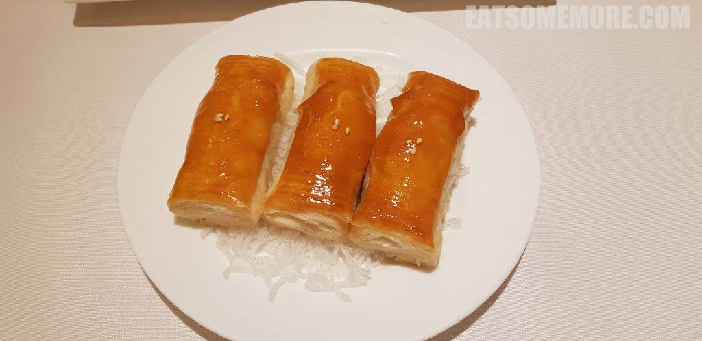接下来是一些经典的广式早茶点心。利苑的叉烧酥是条状的,因此每一口里面叉烧和酥皮的比例更为稳定。