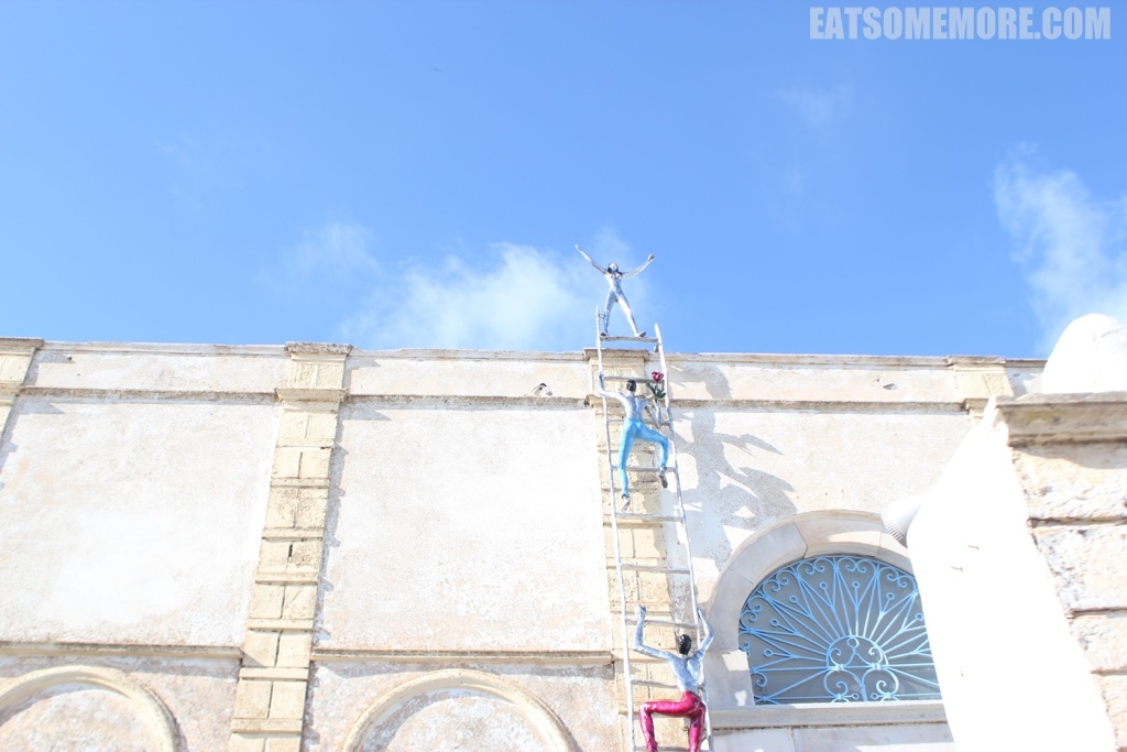 看完日落回到酒店已经快半夜,跟小伙伴们分享了一下如何抵达蓝顶教堂后,想起那里的美景,就愉快地决定第二天一早带着小伙伴们一起再去一次蓝顶教堂。前一天到的时候,费拉镇代步驴子们会路过的台阶已经是满地黄金、气味醉人,这一天因为到得早,还能体验一把这个地方小清新的感觉。