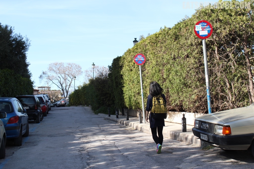 于是我们沿着这个卫城公园一路上坡,朝小修道院地铁站去。