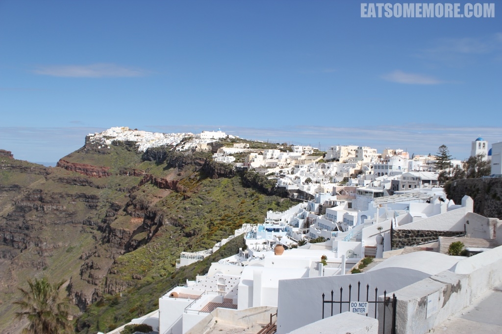 早餐后,搭乘酒店巴士到达费拉镇,开始了一天的“晨练”。四月初的圣托里尼,早晚还是挺凉的。但是走几步就觉得这里也美那里也美。
