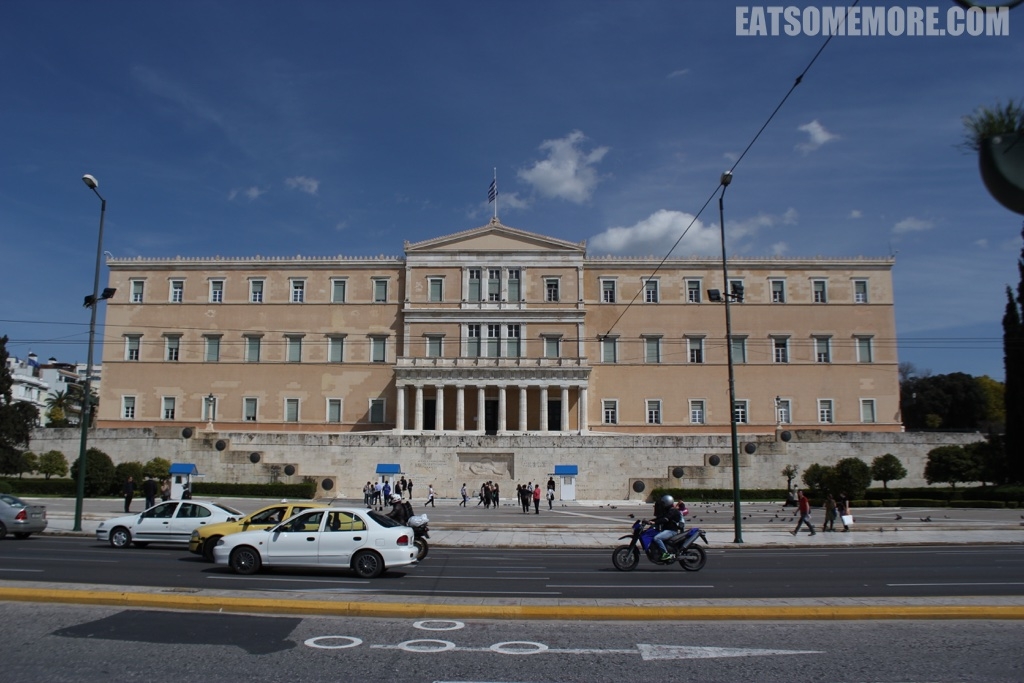 刚降落在雅典,一走出机场就感受到了这里的天高云淡和山峦苍茫,很有加利福尼亚的即视感。从一下飞机,我们也开始感受到了希腊人民随意洒脱的民族个性,沿着一路上的指示牌绕了一个大圈才到达地铁站。不过好在天气晴朗、阳光明媚、凉风习习,这个过程一点也不令人烦扰。上了地铁准备到宪法广场站下车。一路上可以看见雅典风光。快到宪法广场时,就有人提醒我们这里是宪法广场,并且示意我们准备下车,还把我们的行李往车门推。但是当我们起身跟着行李打算走到门口去的时候,发现当时提醒我们的一男一女已经把手伸进了我们的口袋。我们连忙捂好其他的行李,并且把手插到裤兜里。所幸下车时检查了什么都没有丢。如果没有弄错的话,下面这个就是宪法广场了,感觉并不很酷。