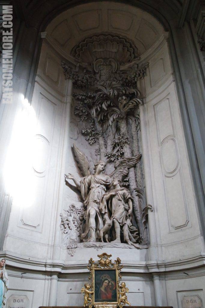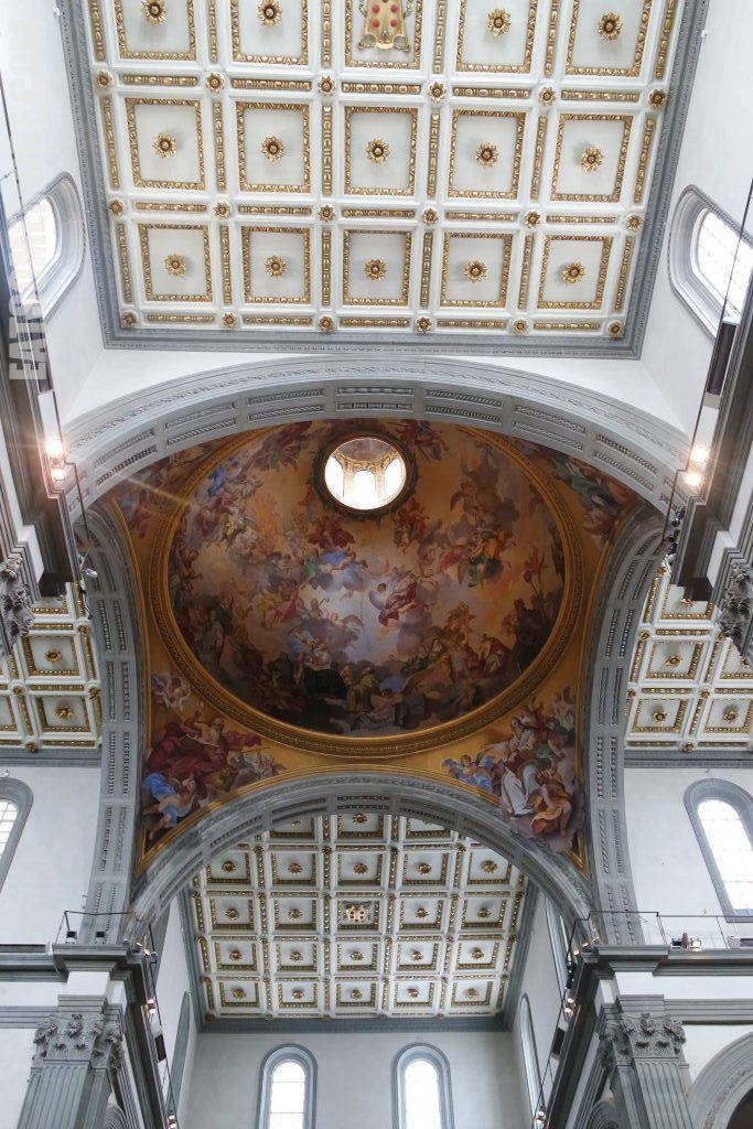 教堂内部充满了艺术瑰宝,除了名师的画作和雕塑,穹顶上的壁画更是绚丽夺目、栩栩如生,好像真的是这些人物漂浮在半空当中。