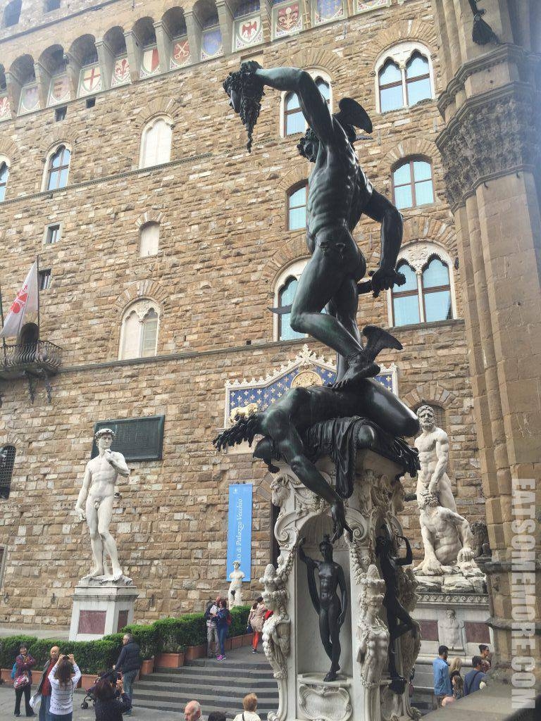 领主广场上陈列了许多栩栩如生的雕像,不仅有大卫、海格力斯和凯克斯,还有举着美杜莎首级的珀耳修斯。这其中更是有些来自十六世纪的作品本尊。