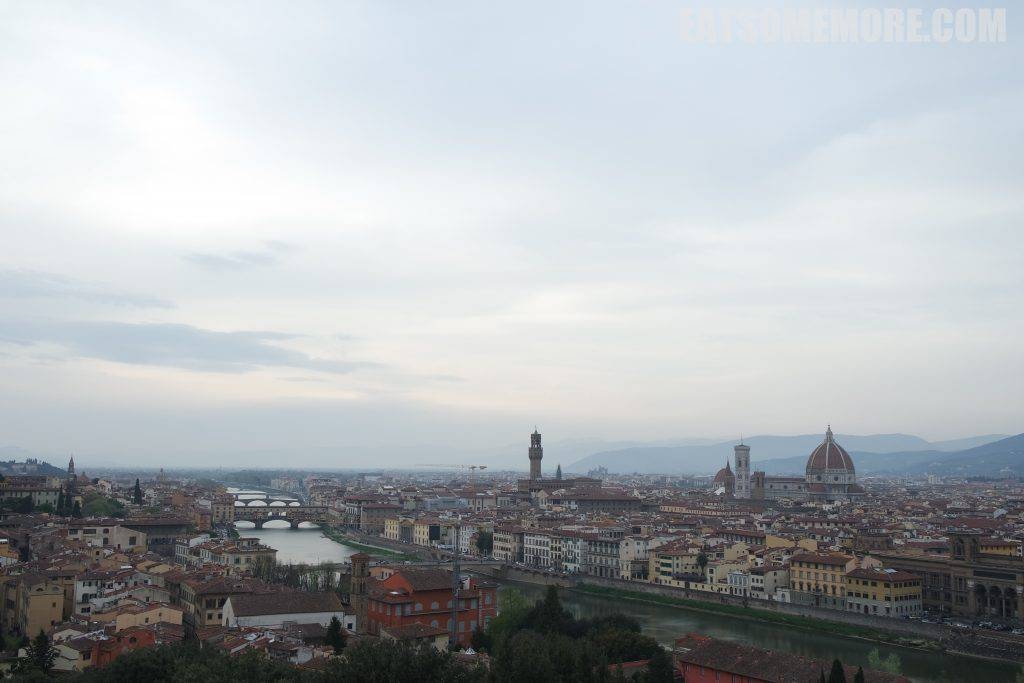 从广场可以俯瞰整个佛罗伦萨,老桥、阿诺河、大教堂纷纷尽收眼底。如果天气再好些,当是长河落日的美景。