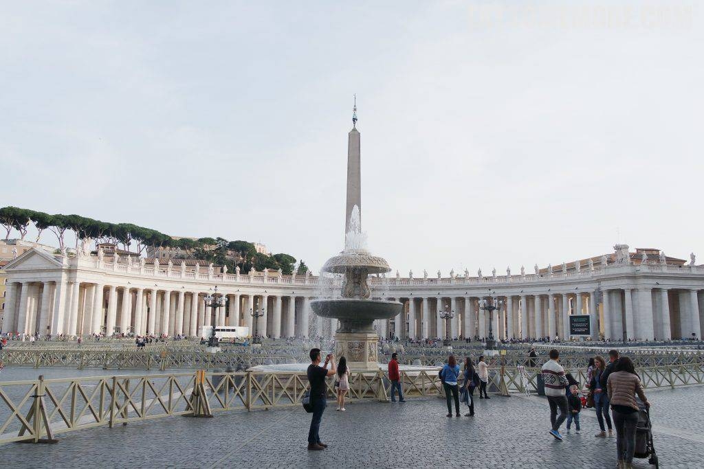 由贝尔尼尼设计的圣彼得广场是罗马最著名的广场之一,两侧有两重巴洛克式柱廊围绕,正中是方尖碑和喷水池。