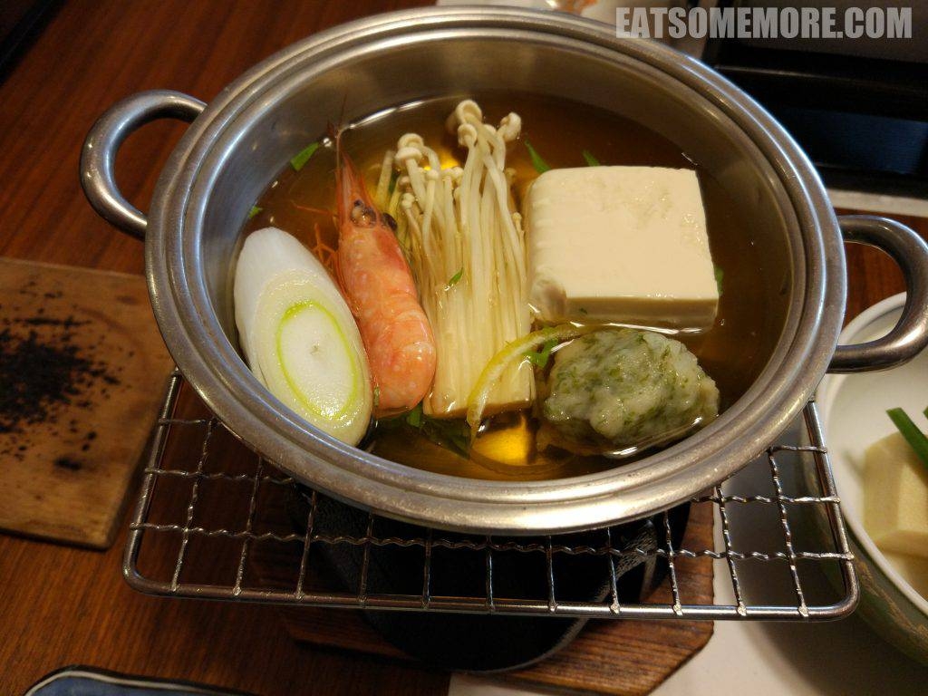 锅里煨着虾子、豆腐、金针菇,汤头带着大葱甜、柚子香,十分鲜美。