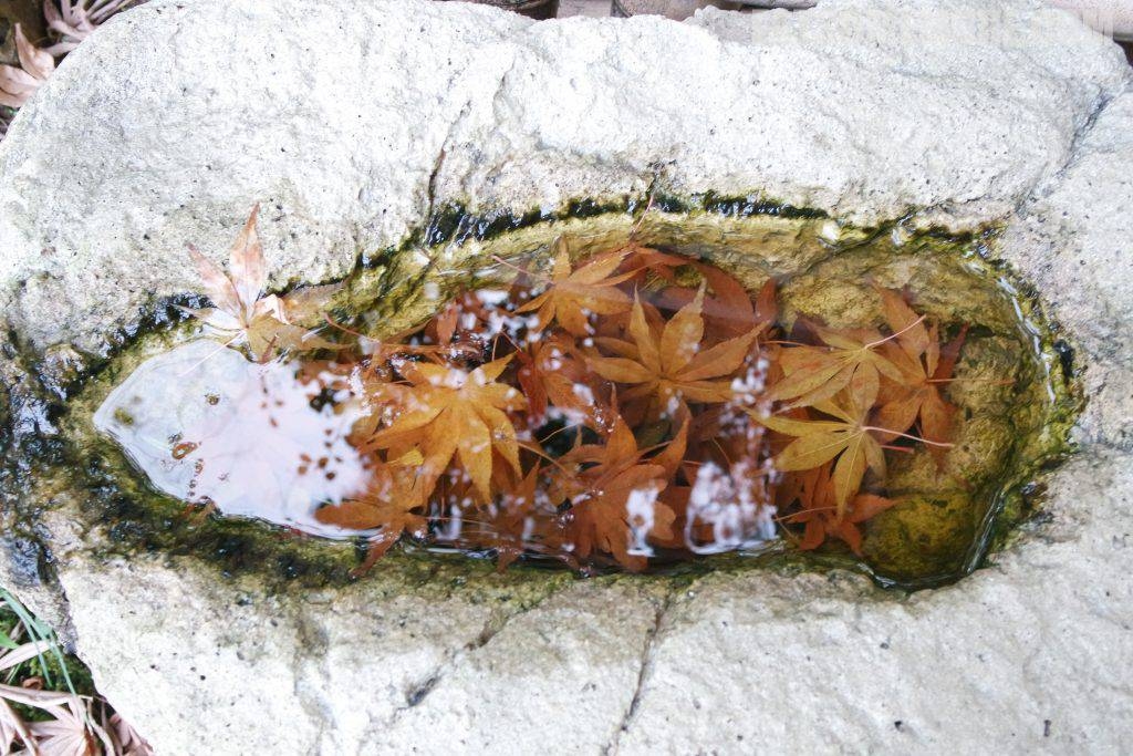 连石头上泡着枫叶的小水坑也特别漂亮。