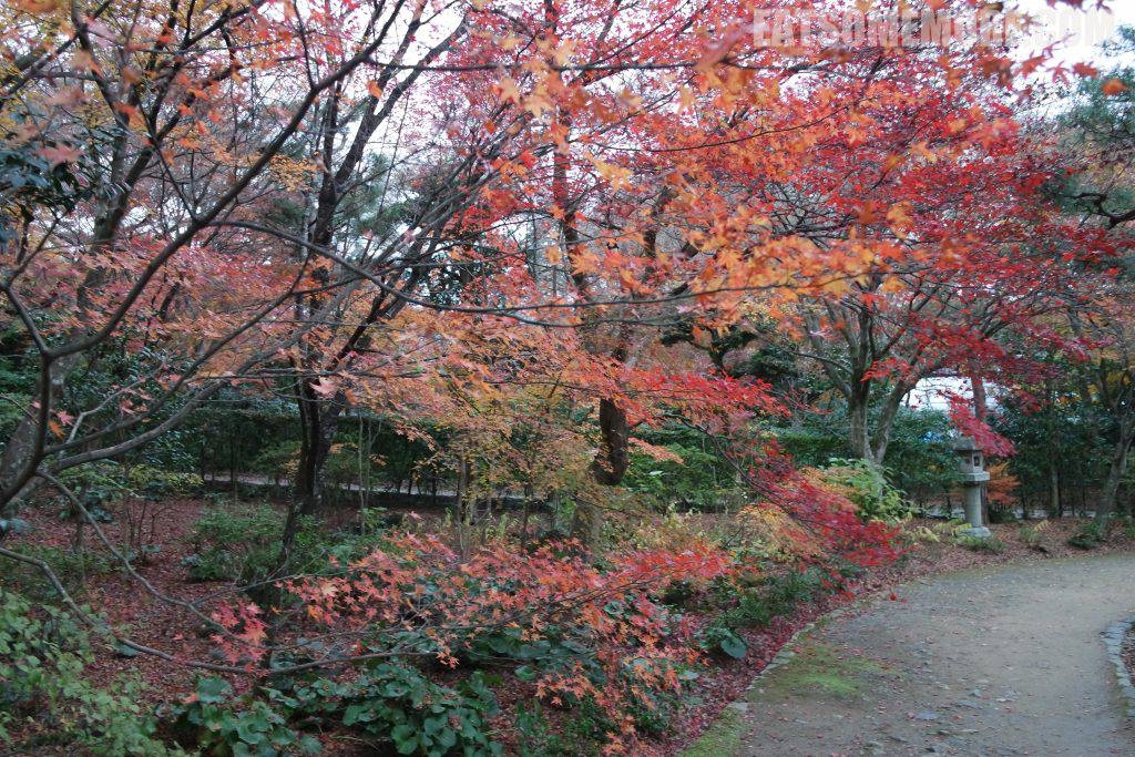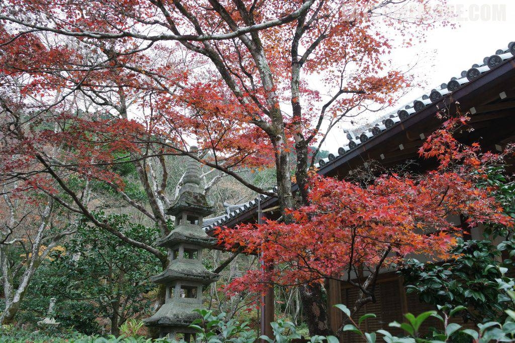 从常寂光寺出来的静谧小径边,红叶挂满枝头。