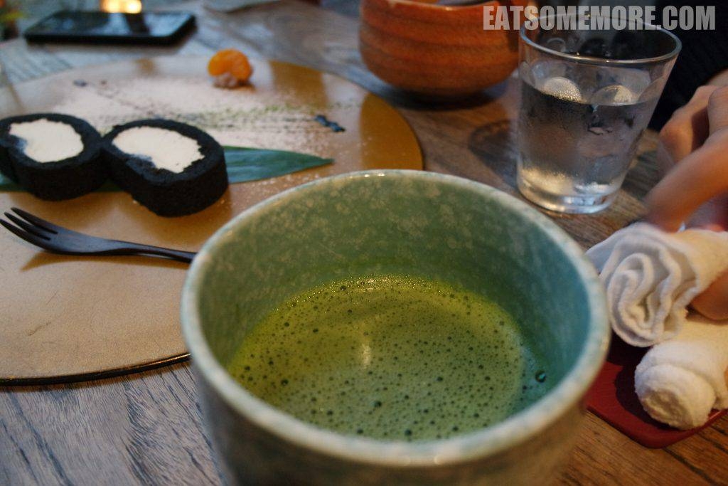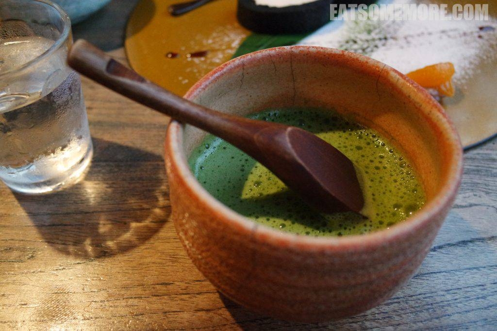 橘色茶盏当中的是抹茶红豆小丸子,味道更甜一些。