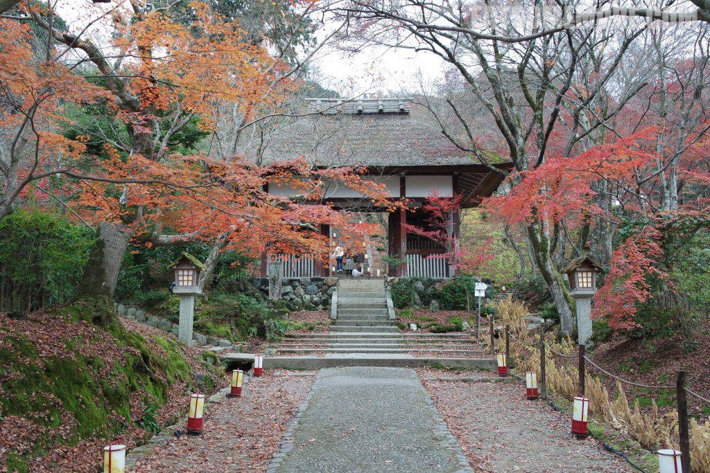走过竹林来到红叶掩映下的常寂光寺。绵延的阶梯穿过山门,一路向上。