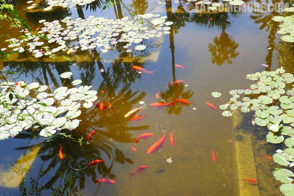 莲池当中婀娜的锦鲤活泼可爱生机勃勃。