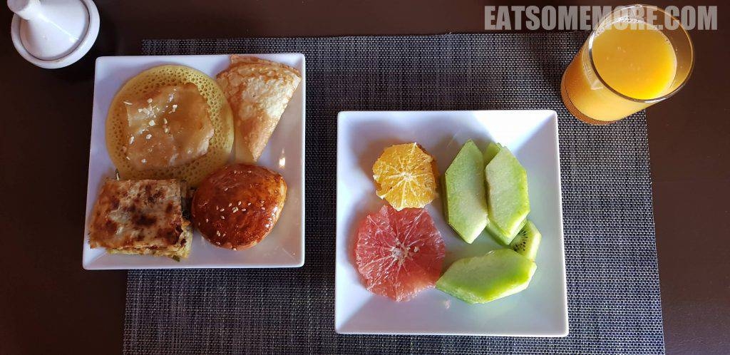 早餐十分丰盛,提供各色摩洛哥面点、水果和蜜饯。