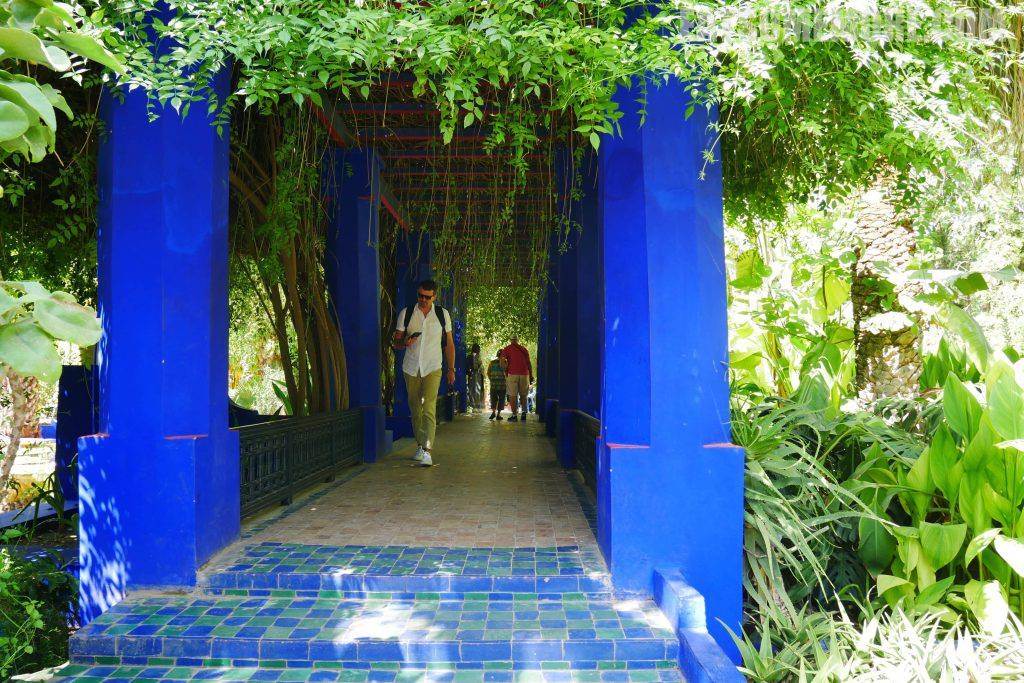 早餐后,乘酒店接驳车来到了位于马拉喀什西北部的马洛雷勒花园,单程120迪拉姆。这是由法国东方主义艺术家雅克马洛雷勒在二十世纪初花了将近40年创建起来的景观花园,占地2.5英亩。著名服装设计师伊夫圣罗兰在80年代买下了这里,并和他的伴侣皮埃尔贝尔杰一起开展重修。他过世后,将骨灰留在了这个花园,对这里的青睐可见一斑。