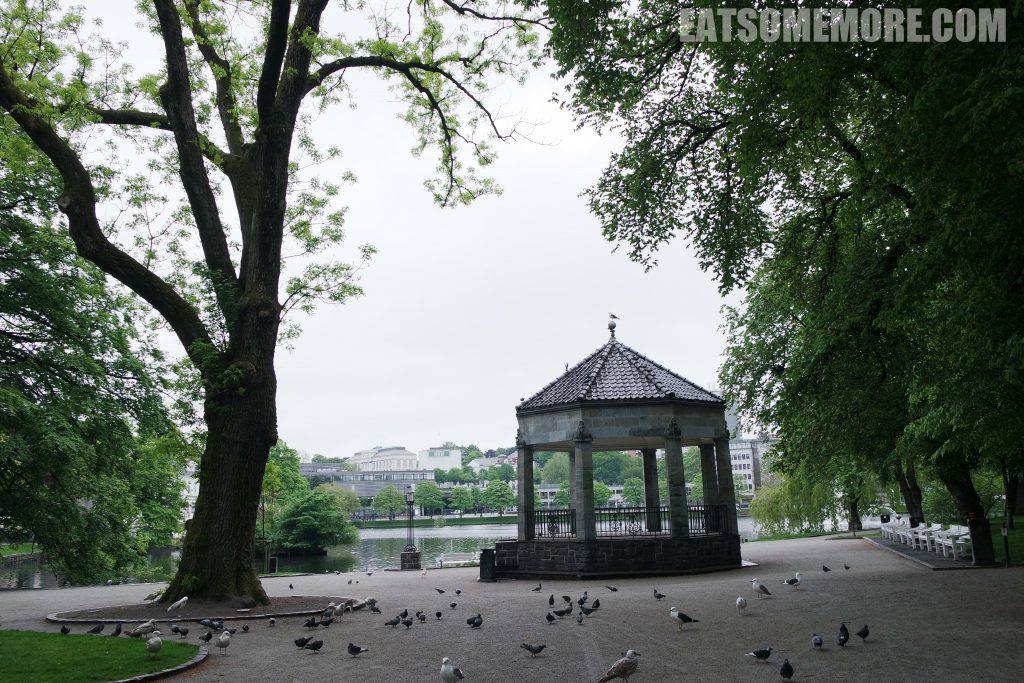 北欧位于高纬度地区,到了夏天,白天就变得很长。吃完晚餐也没有要天黑的样子。回酒店的途中路过Breiavatnet湖,虽说看起来很迷你,但在绿树的环抱和鸽群的陪伴下,又显得有点迷人。