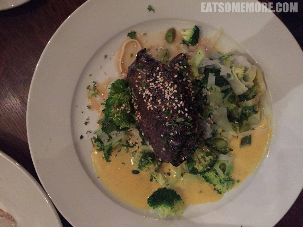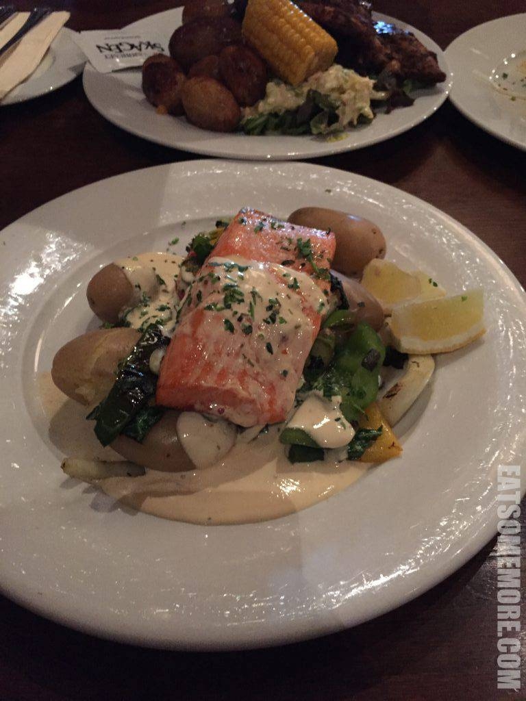 奶油酱鳟鱼非常好吃,并搭配有炒杂蔬。