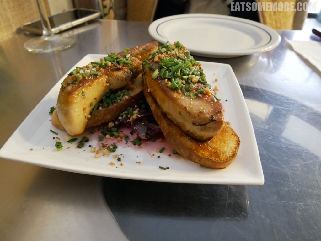 整个葡萄牙行程当中最叫我念念不忘的就是这道鹅肝土司。厚厚的鹅肝煎得香喷喷,洒上葱花和坚果碎,油香饱满,嫩滑多汁。