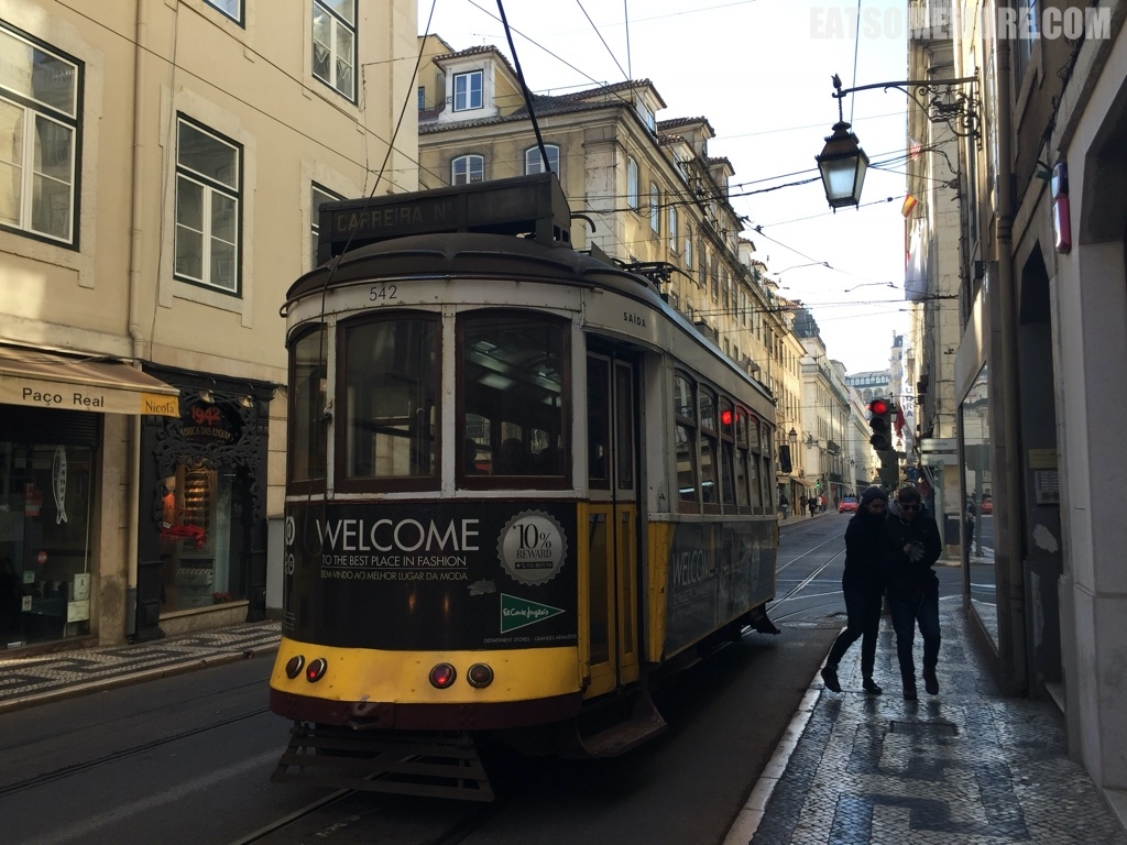 结束游览后,又到了觅食的时间。里斯本的主要街道上驶来了“当当”作响的黄色有轨电车。