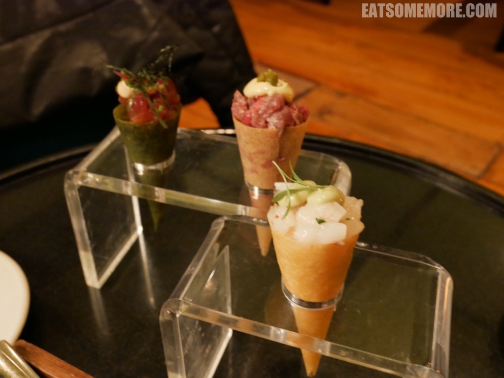 吞拿鱼和扇贝刺身塔塔被非常有创意地放在脆皮蛋筒里,甘甜鲜香。