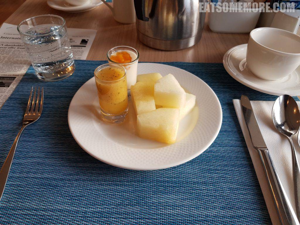 美好的一天从丰盛的早餐开始。百香果橙汁、香芒酸奶和现切香瓜是最好的叫醒服务。