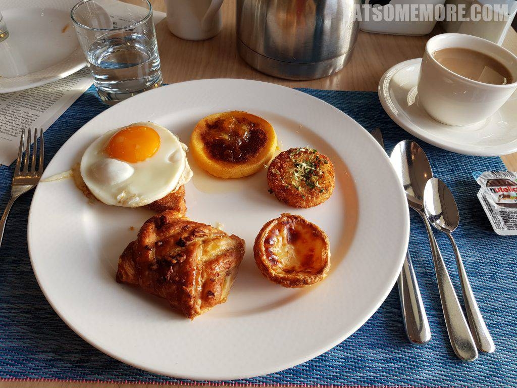 法式吐司配半熟煎蛋、丹麦核桃仁起酥包和葡式蛋挞配上一杯咖啡,早餐因此而完整。