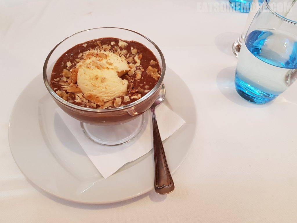 榛仁长角豆慕斯拌香草冰激凌。长角豆原产于葡萄牙附近的地中海地区,有种微甜的可可味。