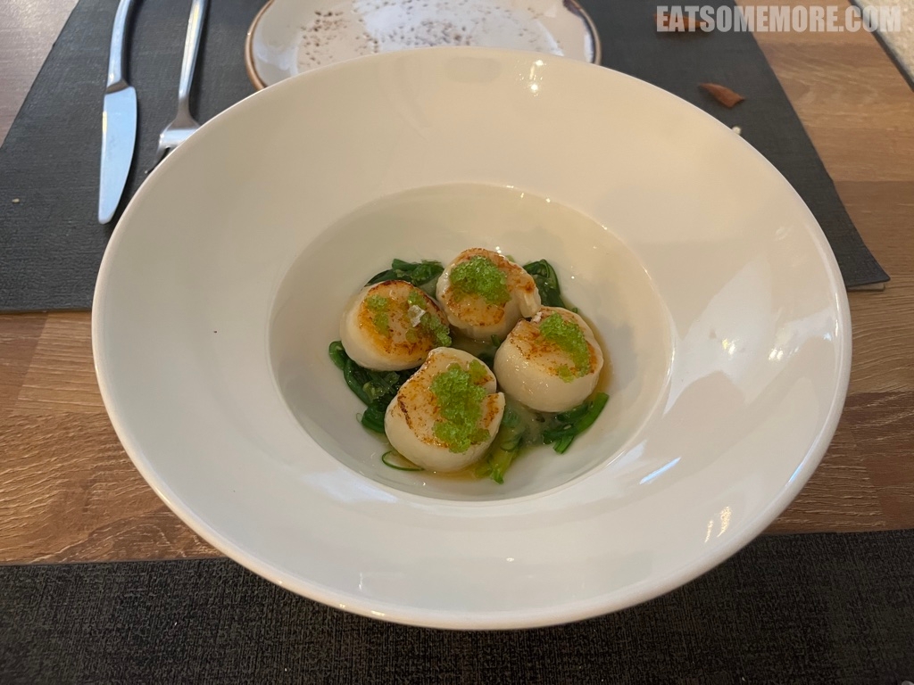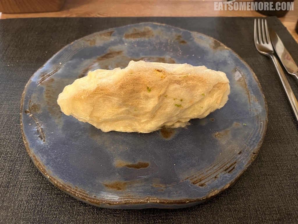 柔嫩的油封圆贝,以芥末鱼籽和香甜的芝麻海带丝来增加口感味觉层次,随着咀嚼在嘴里变得格外甜糯。