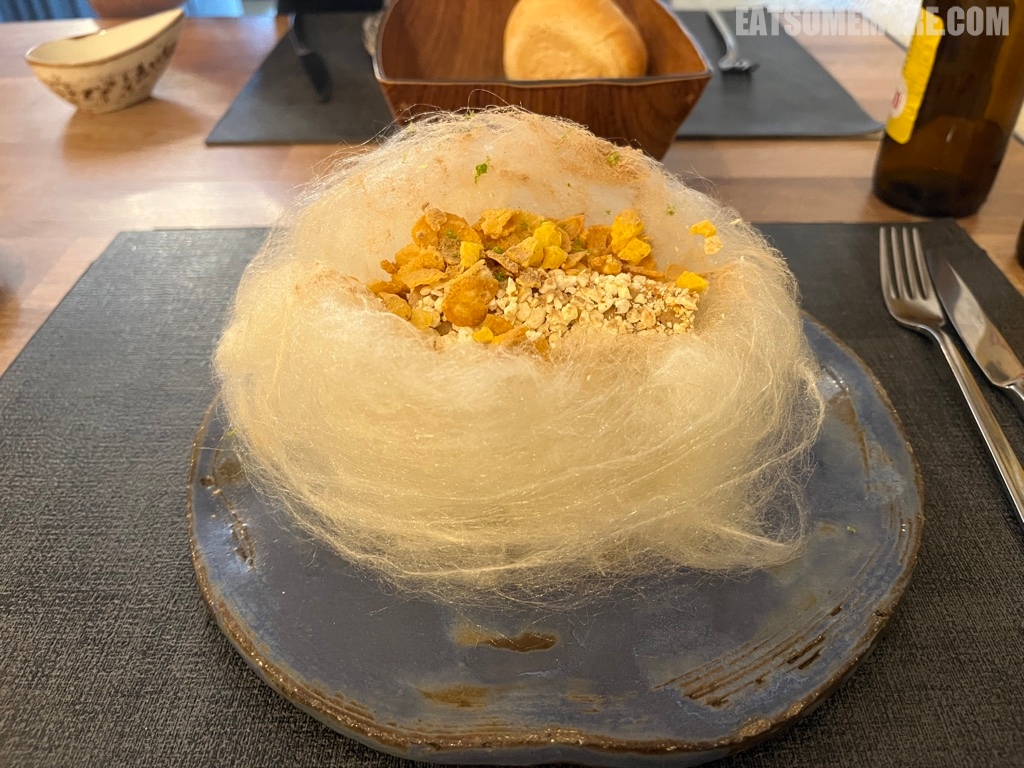 第一道菜是梦幻的鹅肝酱棉花糖。