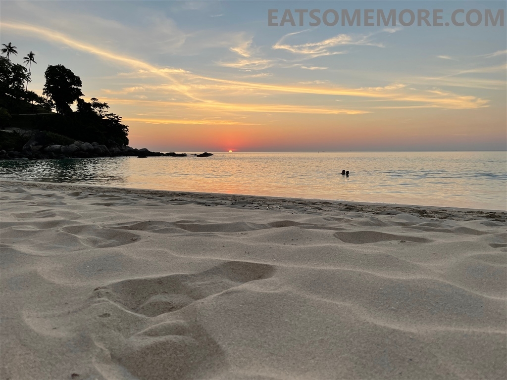 于是我们来到了小卡塔海滩。清透的海水在细软的沙滩上来回往复。