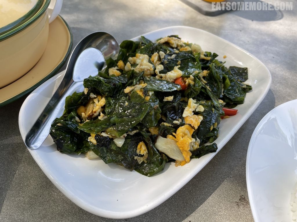 当地特产蔬菜炒蛋香糯清甜,菜叶子有类似海带的口感。