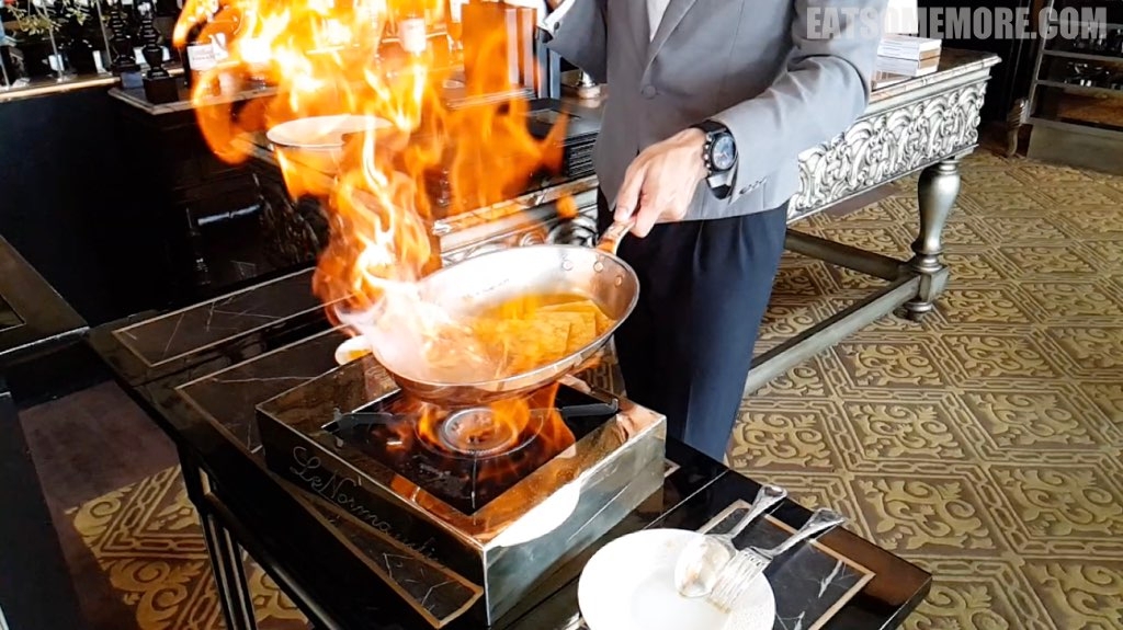 午饭时,我们搭船过河来到湄南河东岸文华东方酒店里的诺曼底人餐厅,是曼谷的五间米其林二星餐厅之一。