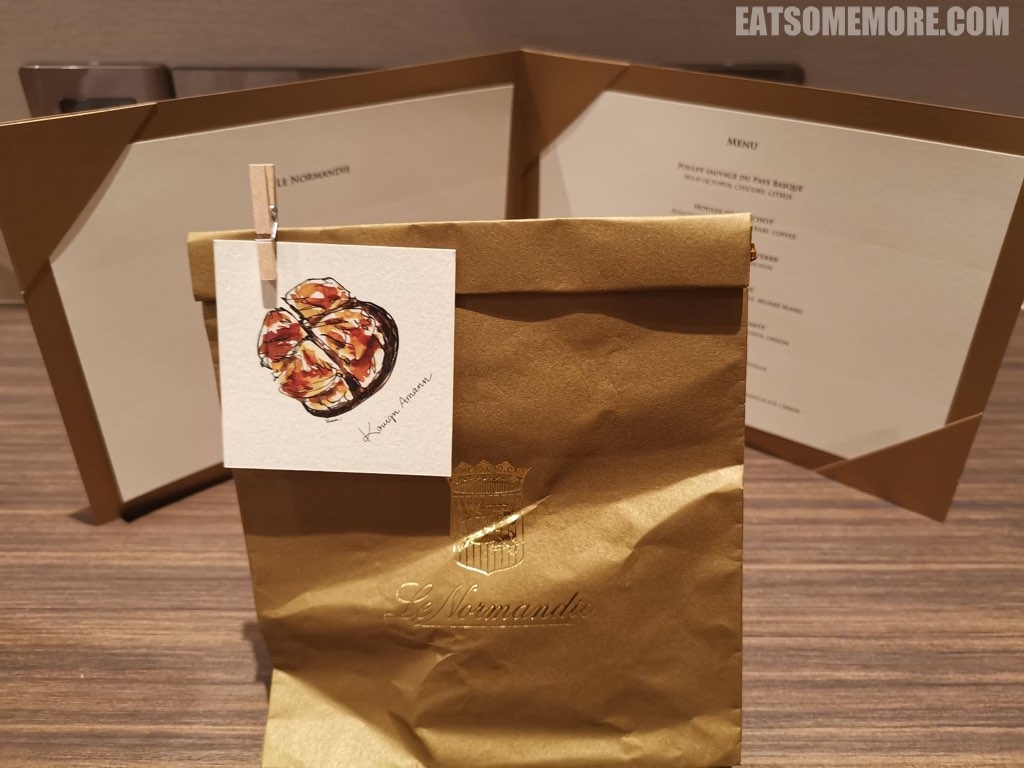 离开的时候,餐厅还赠送了糕点和餐牌作为纪念。