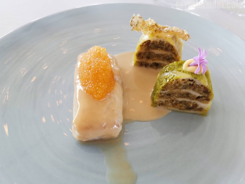 乳化黄油酱卢瓦河白梭吻鲈鱼,肉质鲜嫩细腻,鱼籽咸鲜,鱼皮炸得酥脆。