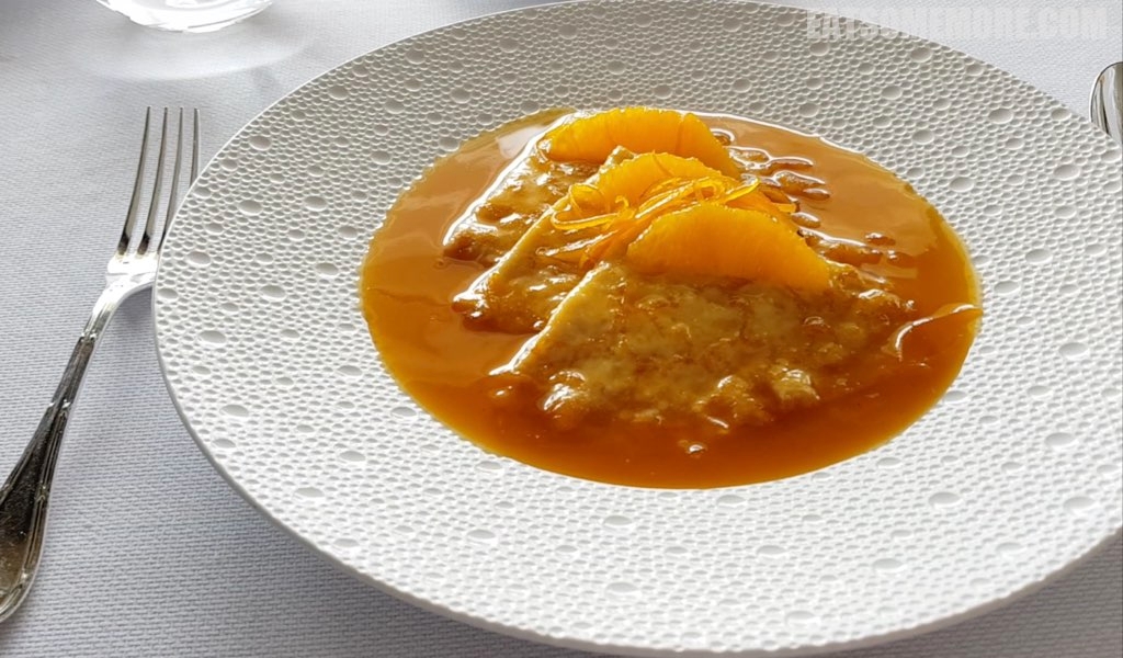 现做的可丽饼搭配了酸酸甜甜的橘子果肉。