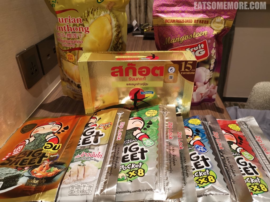 除了新鲜水果,去超市当然少不了买些泰国零食,比如各种口味的小老板海苔、榴莲干、山竹干和罐装即食燕窝。其中最推荐的是小老板海苔,因为它是我至今吃过最脆的海苔片。