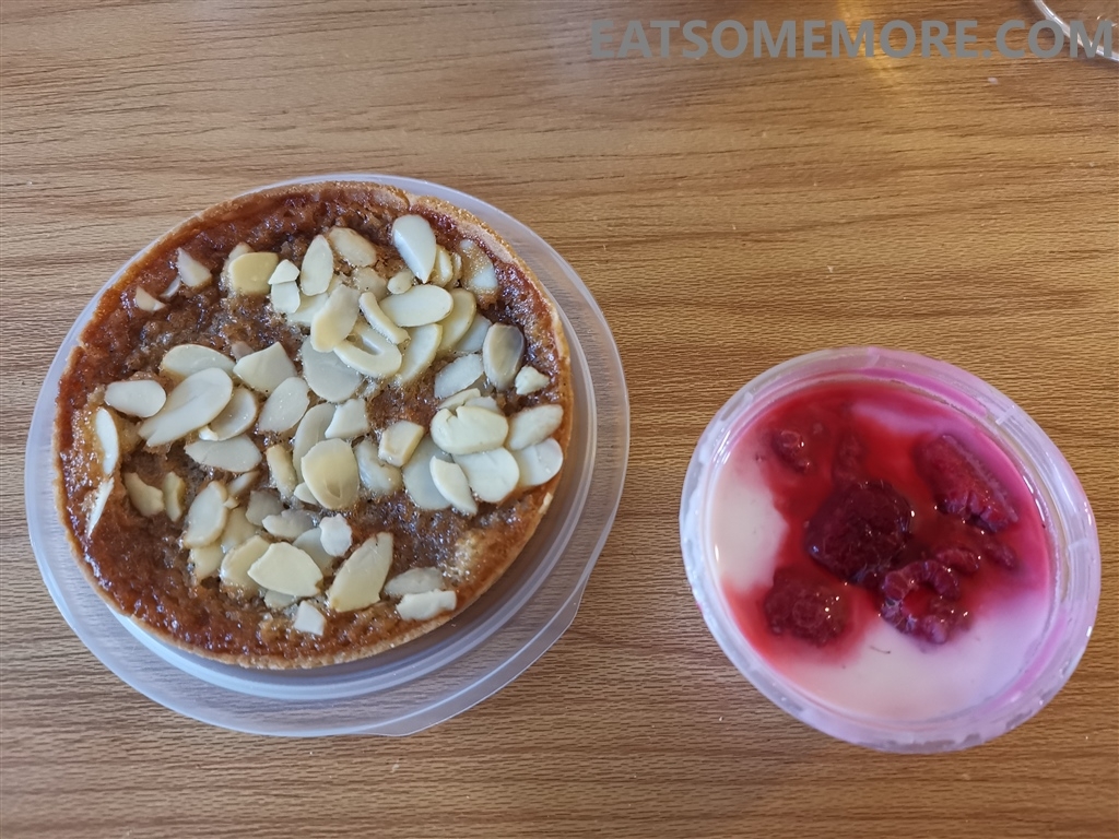 柔滑微酸的覆盆子酸奶搭配香酥松软的黄油杏仁挞倒是有着令人惊艳的好味道。