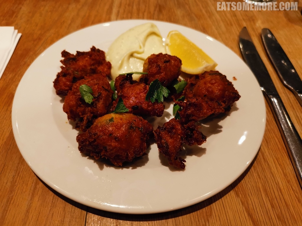 切斯特的北门大街直通镇中心,热闹非凡,比几年前来的时候更难停车了,差点没赶上预约的时间。所幸餐厅非常贴心地帮我们通过电话在厨房关门之前下了单,才没有遗憾错过。炸腌鳕鱼丸酥脆咸香,沾着清香的大蒜蛋黄酱,吃得负罪感满满。