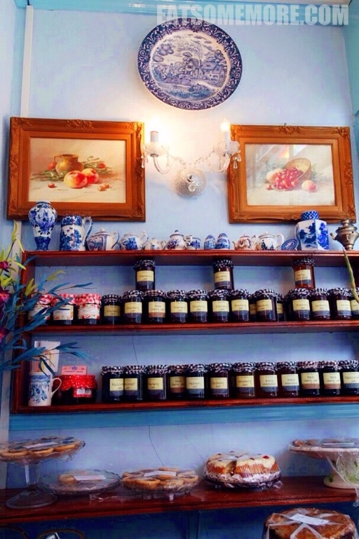 除了司康饼,这间餐厅的餐具和果酱也非常惊人地摆了一墙,十分漂亮。