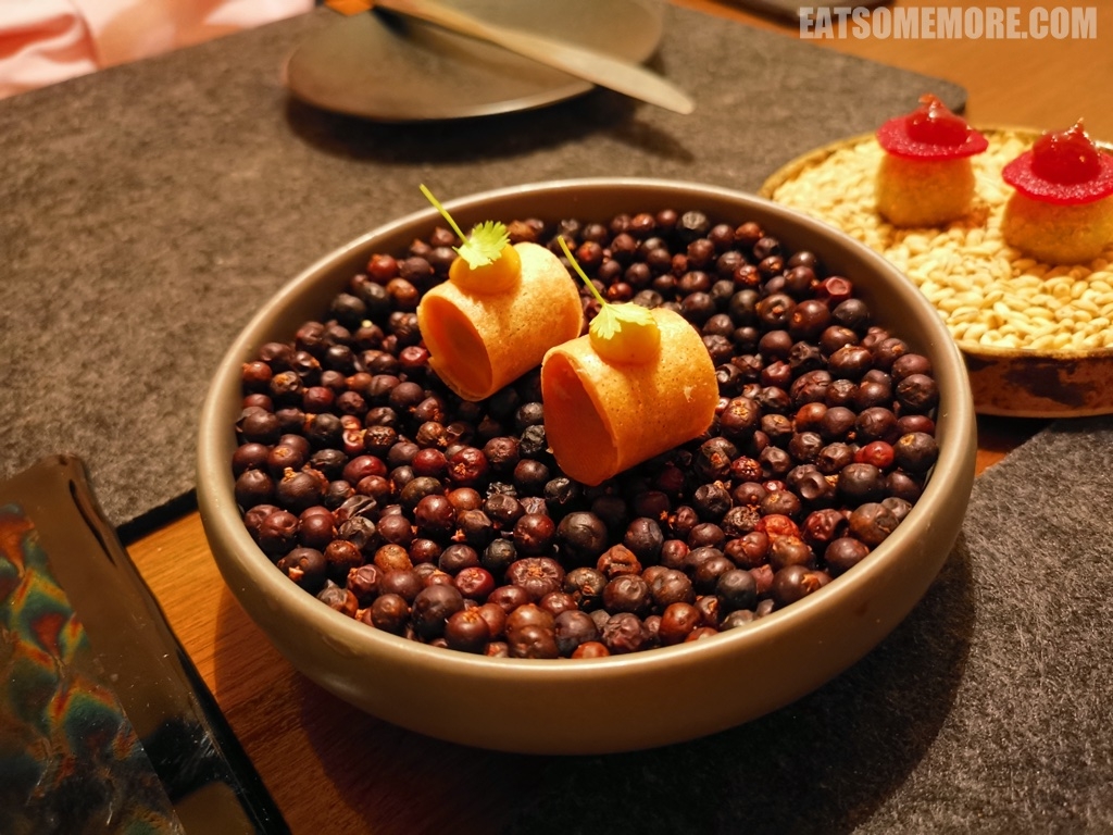 慢炖昆布兰野兔后腿与甜渍胡萝卜脆皮卷,以香料芥末酱和香菜调味,兔腿一蹬就把我带去了暖风习习的南亚。