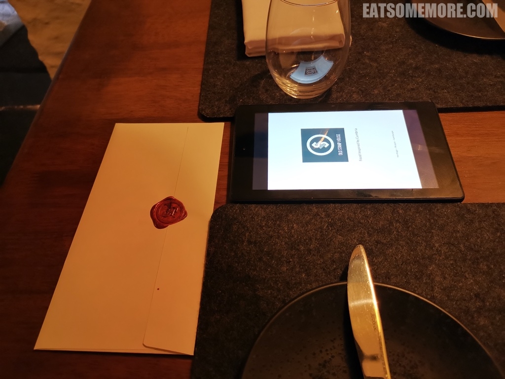坐下后,桌上有一封盖了戳的欢迎信,内附对菜品充满感情的详细解释。平板里面是餐厅的酒单。