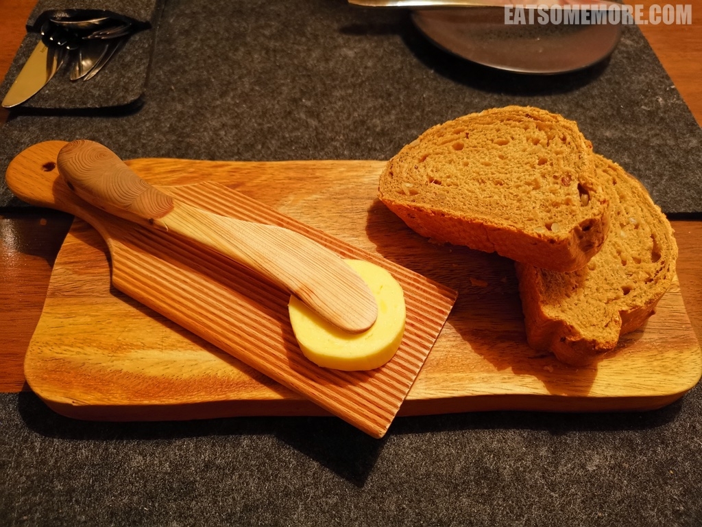 接着上桌的是我至今吃过最好吃的餐前面包,由品牌麦芽果仁面粉和卡特梅尔“最后的狼”(一种本地的红棕色艾尔啤酒)制成,不仅表皮出类拔萃的酥,海绵状部分较其他面包更为紧实湿润,还具有浓郁的麦芽、水果和巧克力的香气,看似平平无奇,却出其不意地惊艳了味蕾。