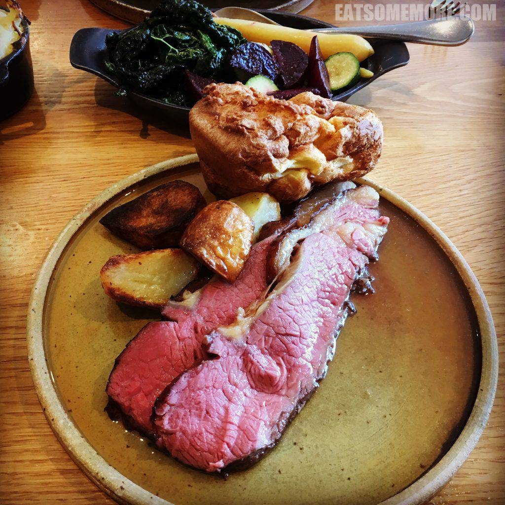 我的主菜是干式熟成生烤牛里脊。根据维基百科,干式熟成的牛肉是吊挂且经过几个礼拜接近〇摄氏度温度风干后的牛肉。干式熟化主要是以两种方式来改变牛肉肉质——第一,水分从牛肉的肌肉组织内蒸发出来,使得牛肉的风味更加集中;第二,牛肉本身的天然酵素会打破肌肉内的结缔组织,软化肉质。一试之下确实如此,肉质软嫩、滋味丰富。科技使人进步,也使美味更进一步呢!