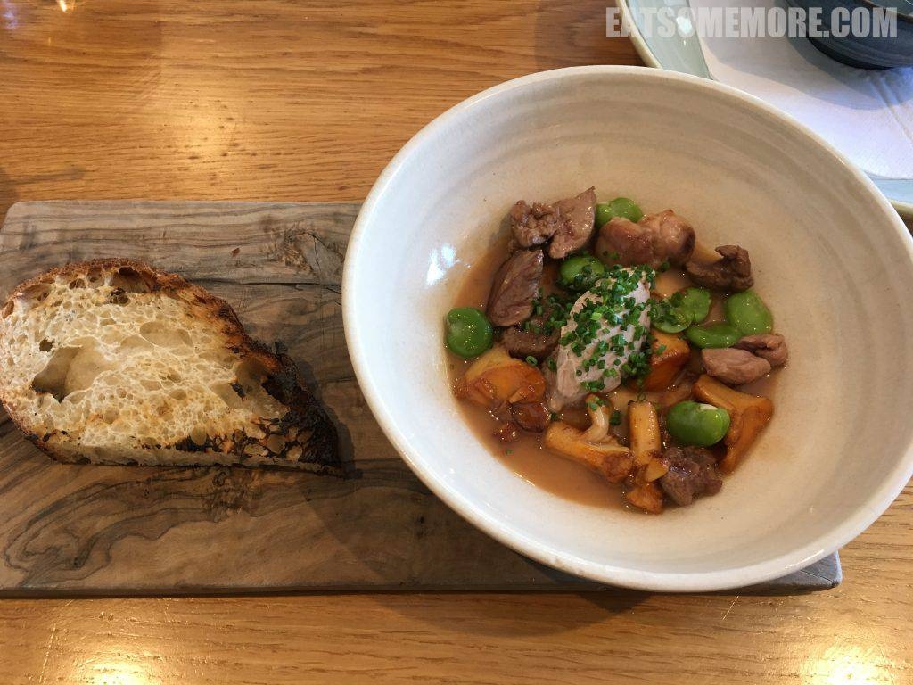 米其林餐厅的猪下水口味还是很重,但是一起炖煮后的黄菇和蚕豆却异常鲜美。
