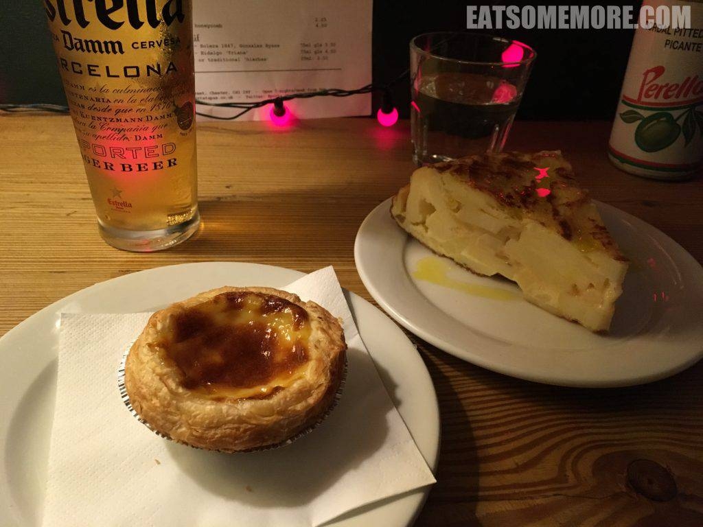 蛋挞冷冷的,蛋味不浓郁,甜味却很重。西班牙鸡蛋土豆饼上淋了橄榄油,是一种亲民的美食。